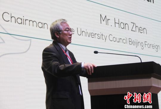 图为北京外国语大学党委书记韩震作主旨发言 林永传 摄