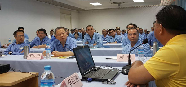 首先杨成金老师以‘入缅须知与忌讳’为题,随后赵紫荆老师以‘缅甸12节气’为题,进行讲述。最后李祖清校长以‘奇特缅甸文化’为题,就缅甸文化、缅人的思维、缅甸民族的特性、寺庙的功能、对待员工的态度等内容进行讲述。全场中国员工全神贯注,注意听讲。