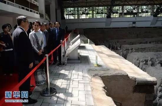 资料图片:2016年8月20日,正在中国进行正式访问的昂山素季在西安秦始皇兵马俑博物馆参观