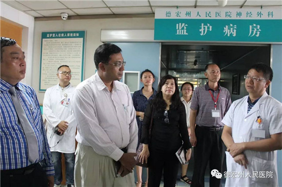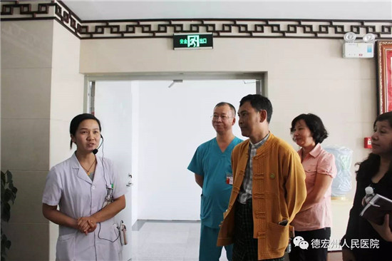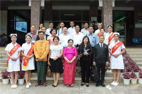 2017年6月29日上午,受德宏州人民政府的邀请,缅甸卫生与体育部各地区公共卫生厅官员一行10人,在云南省卫计委对外交流处处长游孟昆、德宏州人民政府副秘书长尚正宠、州卫计委主任杨杏等陪同下到我院参观交流。我院领导、医务科、护理部、影像科、中医康复科等部门负责人热情接待了交流团一行。