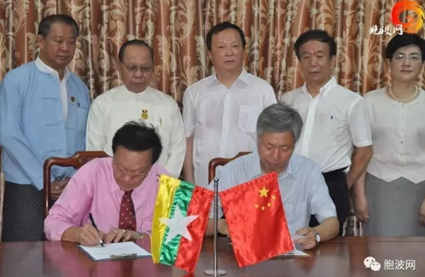 座谈会结束后,黄鹏飞先生与邹宏国分别代表缅北中华商会、常州总商会签署了《中国常州市总商会与缅北中华商会建立友好商会协议书》,双方就互通商务信息,邀请对方参加重大活动;开展商务活动,为双方或两地的经济合作创造条件;建立双方企业家和投资者的互访机制,探讨扩大合作领域等方面达成共识。协议书签署完毕后,缅北中华商会、曼德勒缅中友好协会、金多堰妇女慈善会分别与常州市工商会代表团互赠了礼物并合影留念。