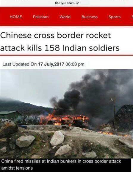 巴基斯坦乌尔都语媒体Dunya新闻网17日突然播发“突发新闻”称,“中国周一在中印边境向印方发射火箭炮,印度至少158名士兵死亡”,令人大吃一惊。不过,该消息很快被发现是假新闻。