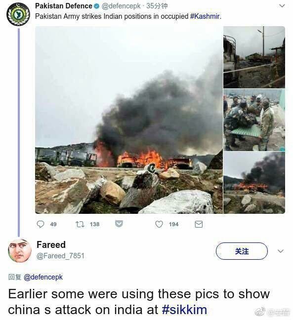 据环球时报消息,上述的假新闻来自于一个巴基斯坦媒体,新闻的拍图均为是印巴近日在克什米尔地区冲突的画面。