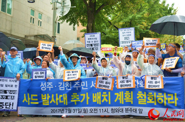 7月30日,韩国政府决定临时部署剩余4辆“萨德”发射车的消息一经公布,便激起了星州及附近民众极其强烈的反对。30日下午,200余名当地居民在“萨德”部署地附近的韶成里村抗议,谴责政府决定过于仓促,要求立即撤回部署决定。