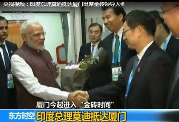 莫迪乘专机大雨中抵达厦门 面带笑容(图)