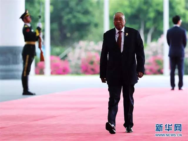 9月4日,南非总统祖马抵达厦门国际会议中心。