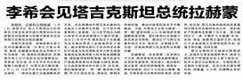 拉赫蒙告诉李希,这是他第二次来到辽宁大连,他非常喜欢这座美丽的城市,“你们的热情接待,使我有一种家的感觉”。
