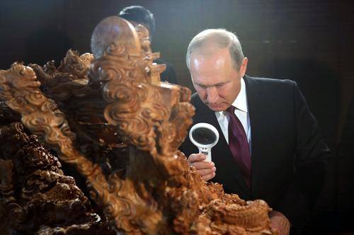 在福建工作了17年半的习近平,对闽南文化非常熟悉,参观中他很自然的为普京当起讲解员。普京在整个参观过程中经常拿起放大镜仔细看一看,并询问非遗传承人具体的工艺流程,多次与现场陪同的厦门市非物质文化遗产专家黄念旭握手表示感谢。