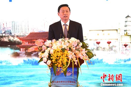 福建省省长于伟国在第九届世界华文传媒论坛致辞中指出,遍布全球的海外华人媒体是联系中国与世界的重要桥梁,福建与海外华文媒体一直保持紧密联系。他表示,福建将借助世界华文传媒论坛进一步深化与海外华文媒体的交流与合作,更好地联系侨胞、凝聚侨心、发挥侨力,更好地推进“21世纪海上丝绸之路”核心区建设。(记者 龙敏,王东明摄)
