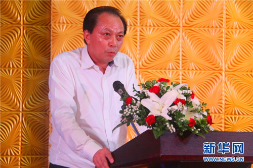图为中国驻越南商会会长顾朝庆在晚会上致辞。