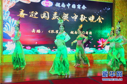 越南中国商会9月26日晚在越南首都河内举行了迎国庆贺中秋晚会,来自中国驻越南大使馆及商会成员的代表300余人参加了晚会。