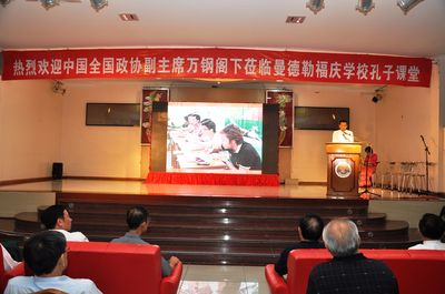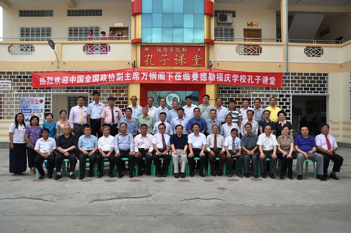 下午四时,中国国家政协万钢副主席率代表团莅临曼德勒福庆孔子课堂,与当地校领导侨领们一起进行座谈。