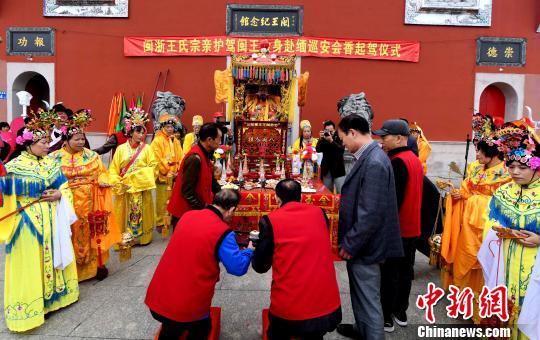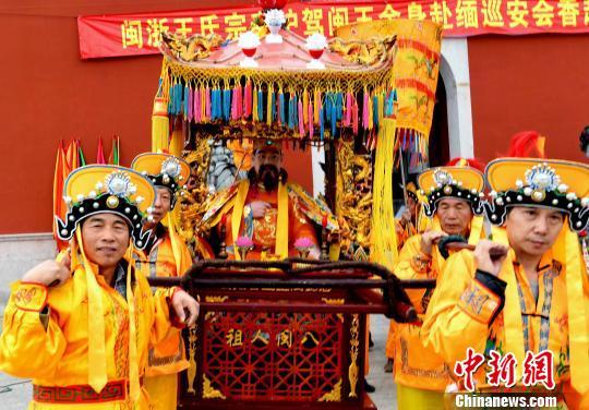闽浙王氏宗亲护驾闽王金身赴缅甸会香起驾仪式在福州闽王纪念馆举行。 记者刘可耕 摄