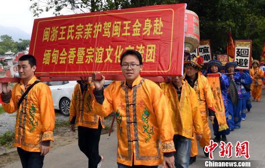 据中新网福州11月30日报道 闽浙王氏宗亲护驾闽王金身赴缅甸会香暨宗谊文化交流团一行135人,30日在坐落于福州市晋安区新店镇莲花山下的闽王纪念馆举行闽王金身起驾仪式。