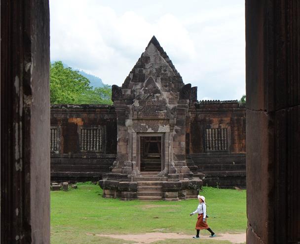 ↑这是2017年5月5日拍摄的游客在老挝占巴塞省瓦普庙游览的资料照片。瓦普庙位于老挝南部的占巴塞省,被联合国教科文组织列入世界文化遗产名录