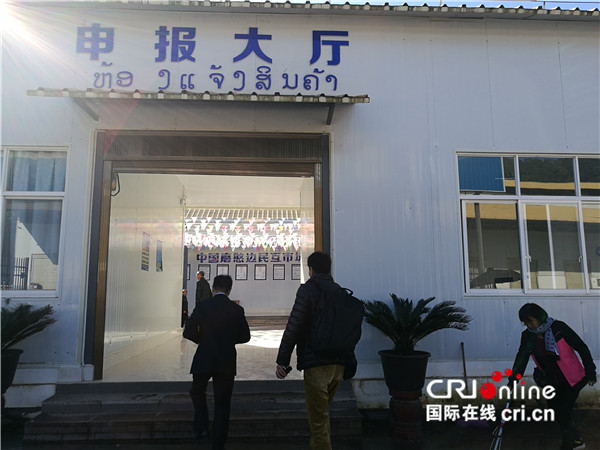 您现在听到的声音来自中国云南省西双版纳中国和老挝边境的磨憨口岸,在这里设置的中国和老挝边民互市场上,记者看到,宽敞整洁的申报大厅里,很多人正在通过电子屏申报要交易的商品。一位名叫孙哲的商户说:“我就是申报的香蕉,从老挝进口来,我这边可能一天要进10多车吧。32吨左右。不光我这一家,别的家有的更多,跟以前相比,现在(边贸)更规范。”