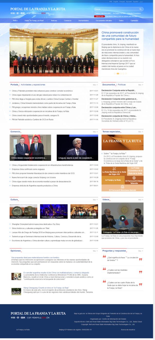 (12月21日,国家“一带一路”官方网站——中国一带一路网(www.yidaiyilu.gov.cn)正式开通俄文、法文、西班牙文、阿拉伯文四个语言版本。)