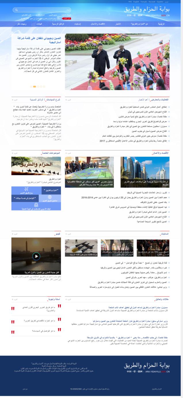 文章导读 国家“一带一路”官网俄文、法文、西班牙文、阿拉伯文四个版本正式上线运行