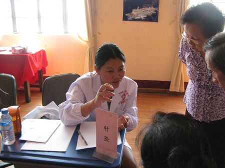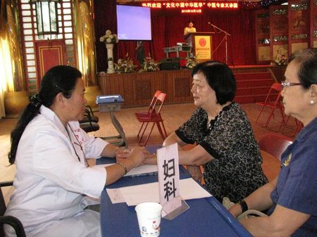 10月12日上午9时至下午5时,,义诊团在华商商会礼堂举行义诊,计有针灸推拿、骨科、妇科和男科。就诊者约七十余人。就诊前,邰先桃副院长作了中医养生讲座,邰副院长精辟生动的演讲、深入浅出,获得与会者热烈掌声,都说获益不浅。