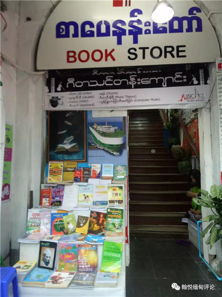 书店集中的另一片区应该算是莱丹(Hle Than) 市场一带,由于临近大学林荫大道,仰大、仰外大、教育大学、医科大学、经济大学、远程教育大学都集中于这一带,所以除了路边书摊外,其中一条小巷子里汇集了包括文学宫、茵瓦文学社、文学世界和文学佳肴一锅端等在内的四家书店。(书店虽然大都以“sar bay--文学”命名,但这一词汇的意义不止文学,更近于知识)。
