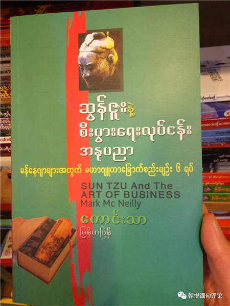 当然,关于“中国”的书不止这些,直观看来,就数量而言,除汉语学习用书之外,排第一的当数“中国风水”。“风水”一词已经成为缅甸语外来词之一,八卦、易经等亦有引介。后面依次是“中国菜”、“中医”等。也有关于中国五千年文明精华的译介,如《论语》、《孙子兵法》等,但如果看作者,或为华人,或为华侨。中国作家,得缅甸大作家们推崇备至的,只见鲁迅一人。可见的中国文学作品翻译本中,古典名著有《红楼梦》、《水浒传》(尚未全部译完),现当代作品有《围城(上海城)》。莫言获诺贝尔文学奖后,相关作品亦有译介。其他主要是童话故事、成语故事等。
