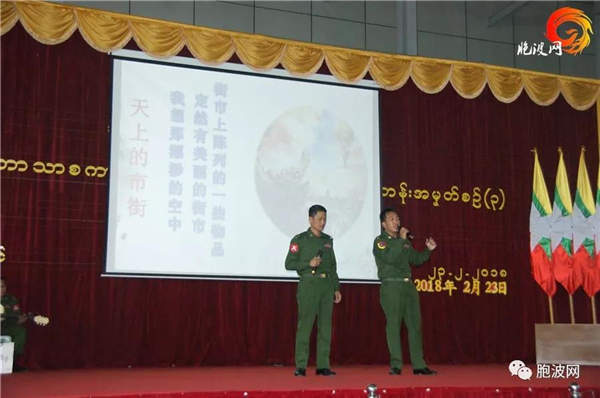 第二个节目竟是一场辩论:“猪好还是狗好”!既幽默又时尚,因为这是对中华文化“狗年”的介绍,同时,很多有关猪与狗的中国成语,尽管让不懂汉语的观众有点陌生或隔阂,但是投影上的缅语解释,都给以补上。