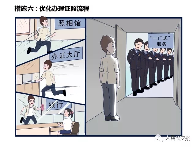 1、优化办理证照流程,将原来办理证照需要的制证照片采集、指纹采集、申请材料提交、面见核查、证件缴费这些分散于不同时间段、不同场所的各个环节集中在同一时间、同一场所办理;