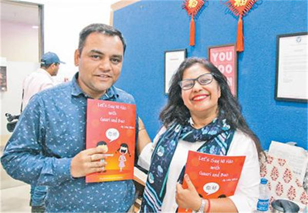 为了能让当地更多人了解中文,伍莎还悉心编写了一本汉语教材。这本书设置了7天的课程,讲述一名印度女孩因为中文学习而与一名中国男孩成为好朋友的故事,配以汉字、汉语拼音、英文解释和卡通形象。