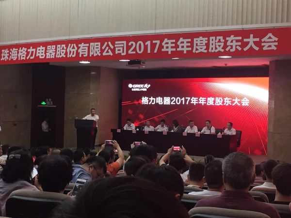 6月25日,格力电器2017股东大会在珠海市格力电器有限公司召开,能容纳500多人的两个会场座无虚席。格力电器董事长董明珠在最后一刻入场,场内骚动欢呼,董明珠针对外界关心的格力分红、造芯片等问题作出回应。