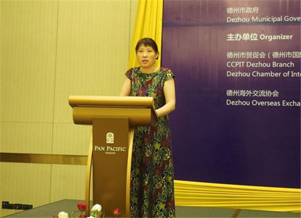 中国国际商会会展部副处长彭婷婷现场发布“2019中国—东盟(德州)企业经贸合作展览会”