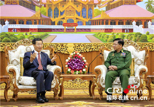 缅甸国防军总司令敏昂莱13日在内比都会见孙国祥一行(国际在线 图)