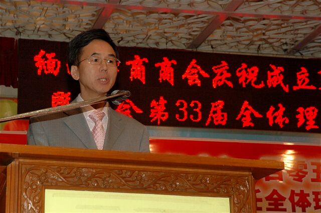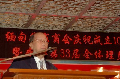 大会主席由卸任会长赖松生先生担任。卸任会长赖松生和候任会长吴继垣相继致辞,赖松生会长在致辞中指出,2013年里本会成功地主办了第七届世界缅华同侨联谊大会和成功地进行了公开的本会第三十三届会长选举;吴继垣会长在致辞中承诺,在他任内将吸收更多的华商菁英加入商会以及争取在仰光举行世界华商大会;杨厚兰大使也登台致辞热烈祝贺商会105岁华诞和33届新职员就职典礼。接着,苏天宝总干事作了会务报告,林再福先生作财政报告,谢齐家副会长宣读第33届全体理监事名单。杨厚兰大使作为监交人,赖松生会长向吴继垣会长移交会印。之后,在吴继垣会长带领下,全体职员宣誓就职,杨厚兰大使、赖松生永远荣誉会长、吴继垣会长共同切生日蛋糕;接着,吴继垣会长及各位副会长、荣誉会长等捐献巨款向商会表示敬意。最后,向本年度荣获高考优等学分的本会直系子孙颁发奖金,计有四科优等生1名,荣获20万缅币奖金、五科优等生七名,各获30万缅币奖金、六科优等生一名,荣获40万元缅币奖金。
