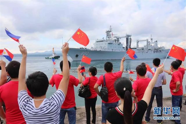 ▲资料图片:2017年5月2日,在菲律宾达沃港码头,中资机构、华人华侨和留学生代表为中国海军远航访问编队送行。新华社发(史奎吉 摄)
