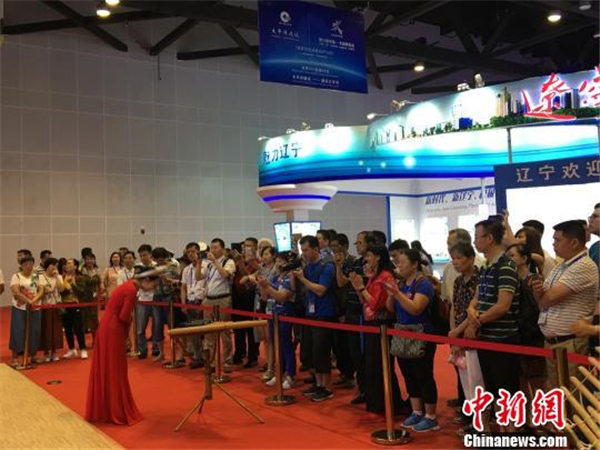 在泰国魅力之城展位,民众体验泰式按摩。 俞靖 摄