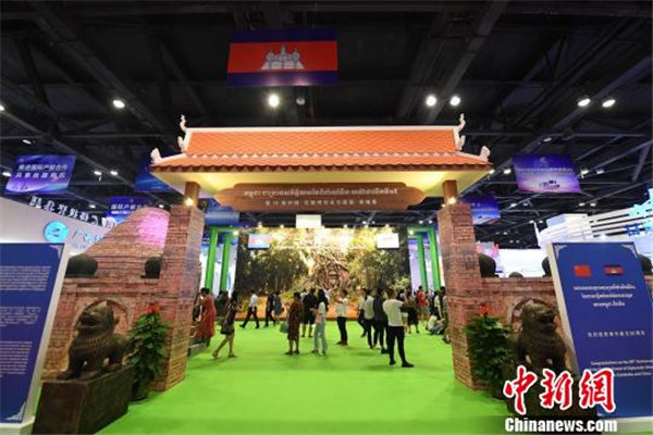柬埔寨展区设计元素取材于被列入世界文化遗产名录的三波破古寺,古迹修建于约1500年前,充满神秘感。 俞靖 摄