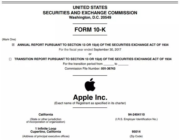 因为根据苹果公司的年报