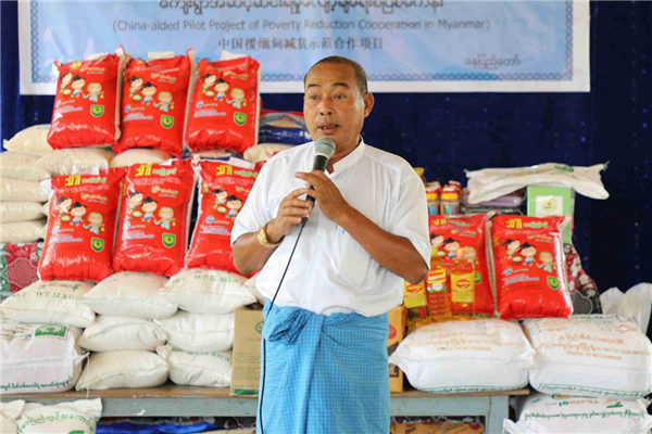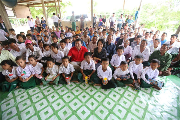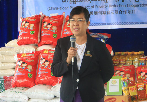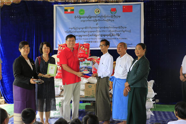 洪亮大使夫妇现场向村民捐赠了大米、食用油、学生文具等物品,并考察了解中缅减贫合作示范项目实施情况。