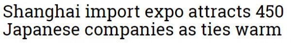 据《日本经济新闻》网站报道,在中日关系回暖之际,上海进口博览会吸引了450家日本公司前来,它们意在扩大中国市场份额。