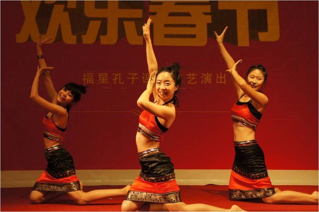 春节晚宴上,学生们载歌载舞共同迎接新春的到来