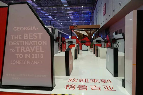 △格鲁吉亚馆设计风格简洁明快。(央视记者沈忱拍摄)