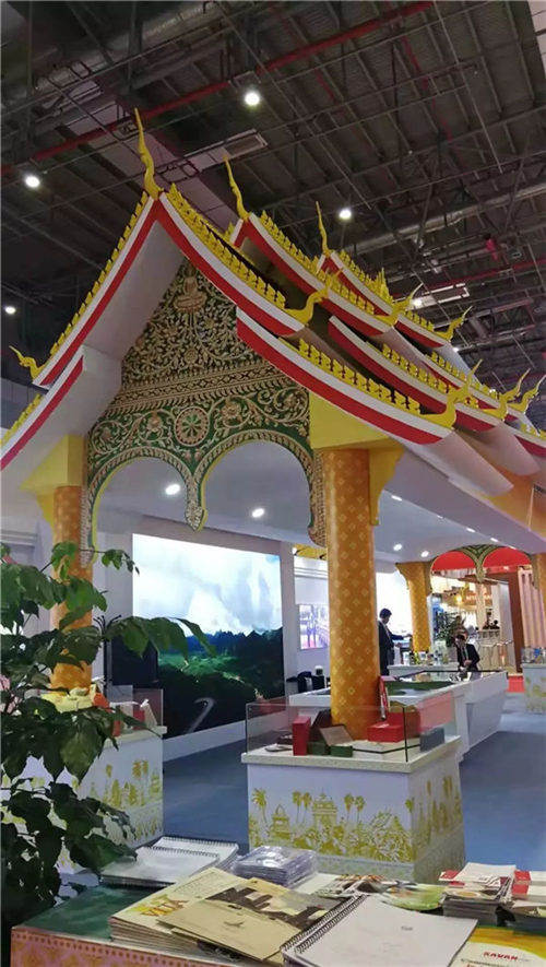 △老挝馆的设计极具当地特色。(央视记者黄京辉拍摄)