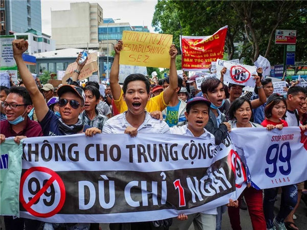 今年6月下旬,越南接连爆发示威,反对者质疑为外国投资商设立新的经济特区的法案将给予中国投资者优待。游行规模达数千人。