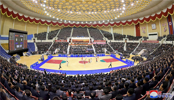 抵达朝鲜的第二天,中朝女子篮球运动员组成“友谊”与“团结”两支混编队进行了友谊赛,每支队伍均由6名中国运动员与6名朝鲜运动员组成。运动员入场时,现场观众纷纷起立鼓掌,欢迎远道而来的中国运动员。全场比赛气氛热烈,最终,团结队以107比106一分优势险胜“友谊”队——其中,“团结”队的中国运动员李梦发挥出色,一人独得32分。