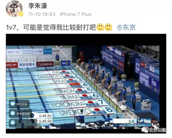 赛后,李朱濠自己也在社交媒体上发布了赛事直播截图,一时间成为微博上的热门话题。