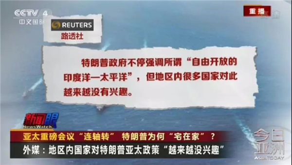 路透社援引专家的话认为,特朗普政府嘴上不停地强调所谓“自由开放的印度洋-太平洋”,但地区内很多国家对此越来越没有兴趣。