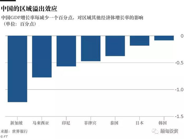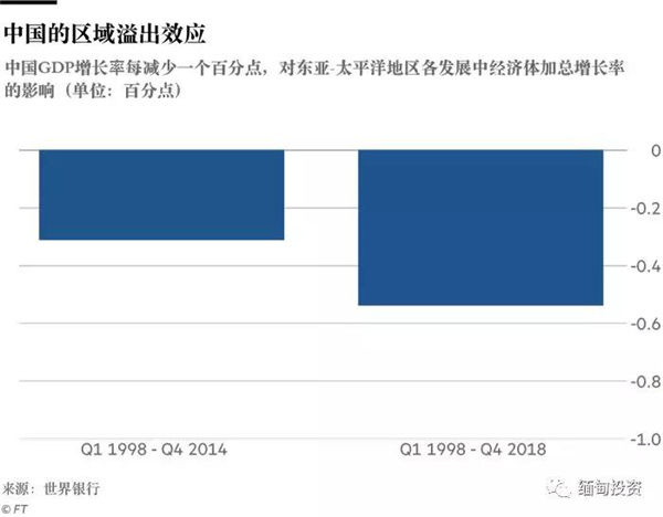 世界银行(World Bank)在上月早些时候公布的《东亚与太平洋地区经济半年报》(East Asia and Pacific Economic Update)中估计,两年后,中国GDP增速下滑一个百分点将令亚太发展中国家的总体增速下滑0.5个百分点。