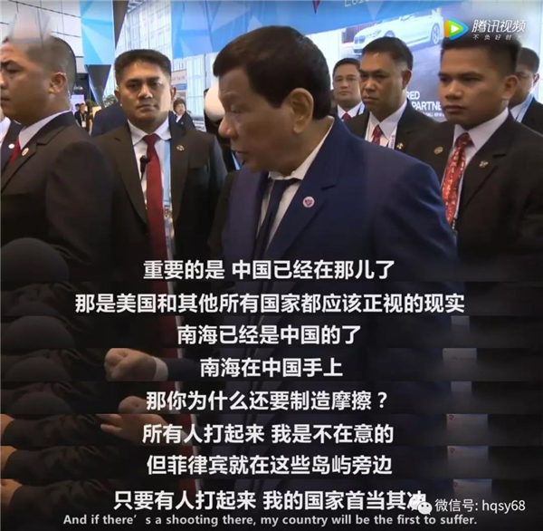 在这两天举行的东盟会议里,老杜直接喊话美国,不要来挑动南海局势。他原话的大概意思是“南海已经在中国手中,要承认这个现实。南海如果发生战乱,身处其中的菲律宾也会遭殃”。