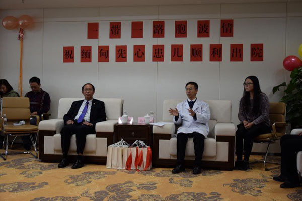 现场,欢送会邀请四名缅甸患儿及家长、中华慈善总会和云南省慈善总会领导、医院领导专家,同时,缅甸驻昆总领事吴梭柏受邀参加活动。