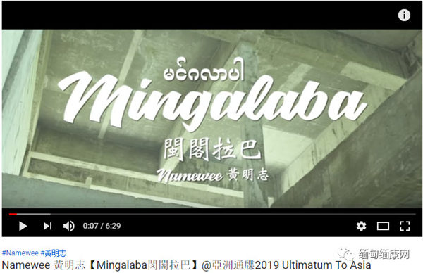 《香港01》报导,黄明志17日晚间8时在脸书粉丝专页发布短片。MV中他背后站着一群貌似地盘劳工打扮的男子,黄明志以「Mingalaba」(你好)作为开头,并在镜头前讲述新歌《Mingalaba 闵阁拉巴》的创作动机。他透露,自己于2年前因为一首歌被送入槟城监狱时,在狱中与一群缅甸非法劳工同仓。