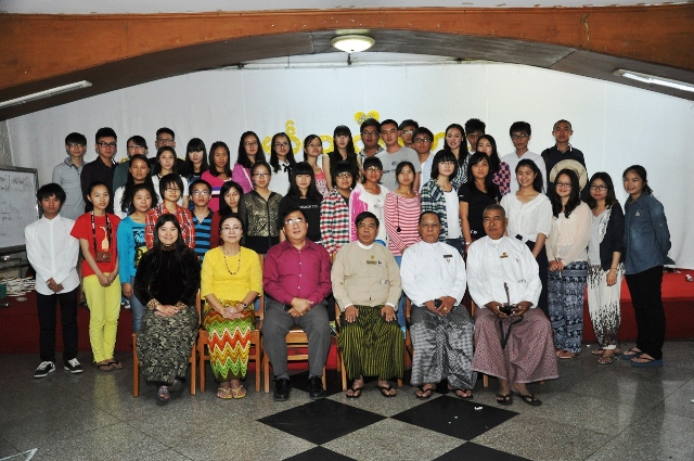 曼德勒缅中友好协会主席吴博敏为让学缅语的中国留学生容易理解,特别放慢语速讲话。他首先介绍,他本人即是前任曼德勒外语大学校长,他说,早些年前他即接触中国留学生到缅甸曼德勒学习缅语。他赞扬留学生们是缅中友好的使者,鼓励他们努力学好缅语,为缅中友好添砖加瓦,并承诺友好协会一定给予大力的支持。
